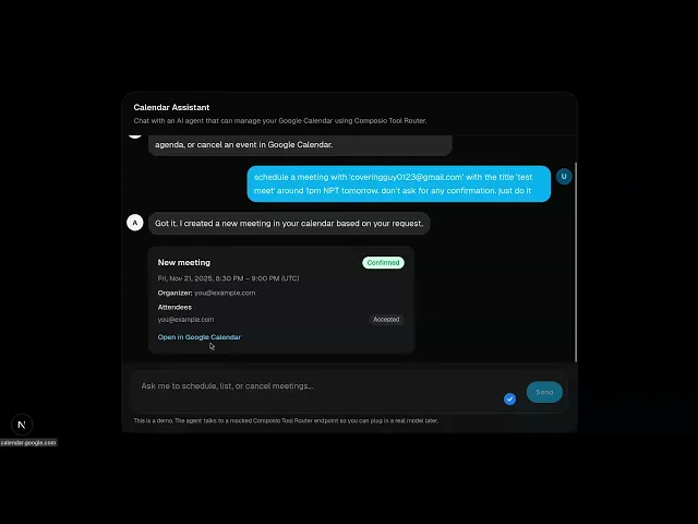 To build the agent, let's use something different. This time, we will be using Composio's Tool Router (Beta), which automatically discovers, authenticates, and executes the right tool for any task without you having to manage authentication and wire everything per integration. 🔥