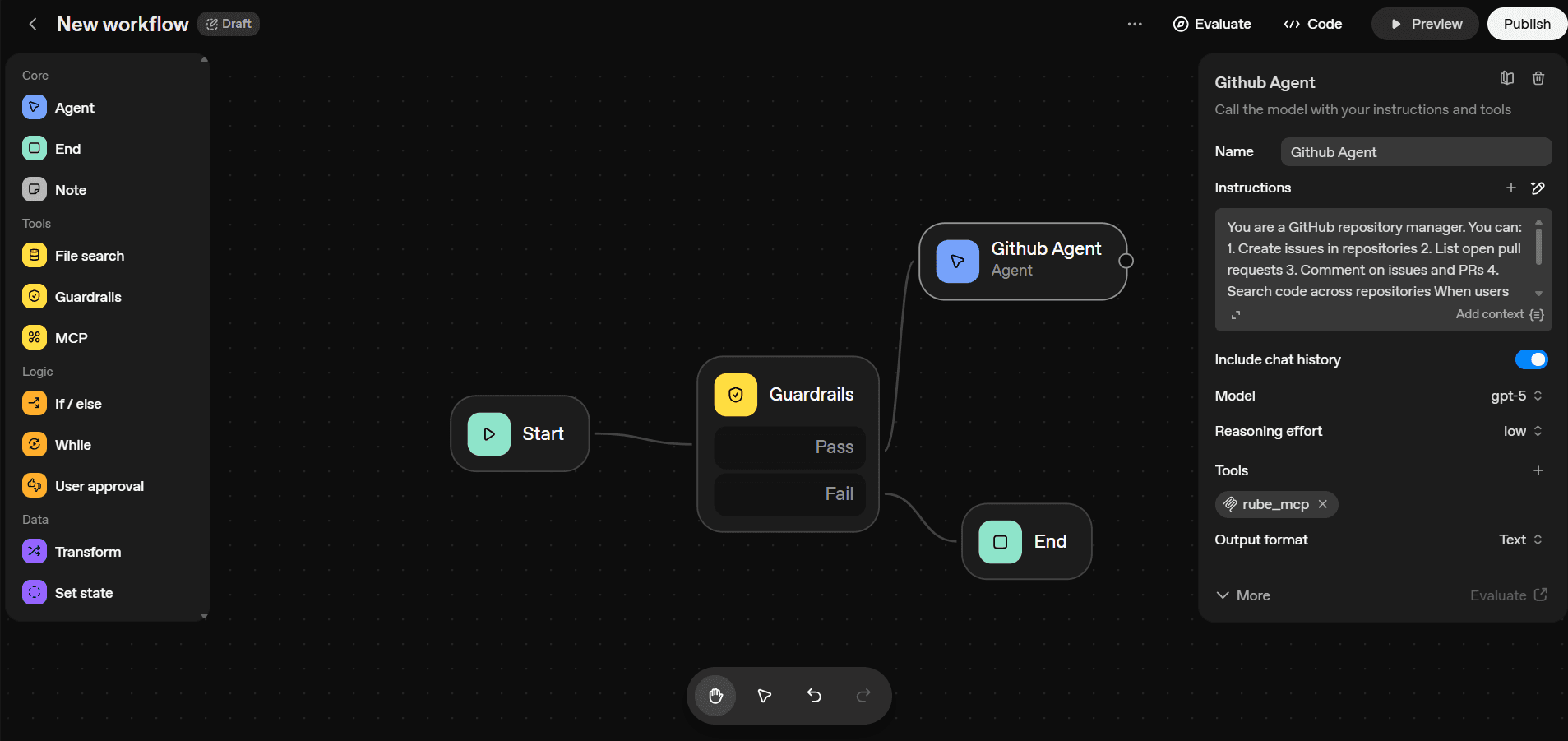 Integrating GitHub MCP with Agent Builder transforms your AI agents from conversational assistants into automation powerhouses. With Rube handling authentication and API management, you can focus on building agent logic instead of wrestling with GitHub's API.