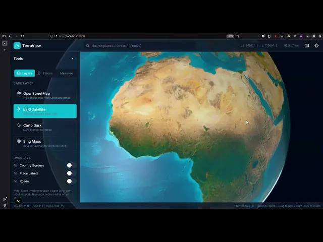 Task 1: Build TerraView (Google Earth-style globe viewer)