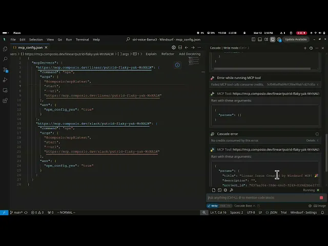 I used a simple prompt to create a linear issue and send a message about it in a Slack channel.
