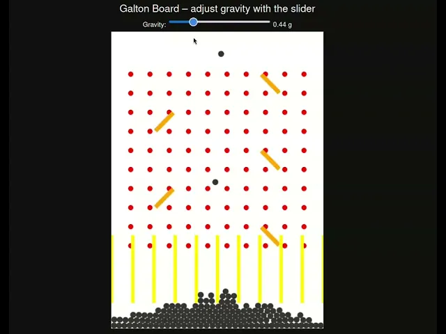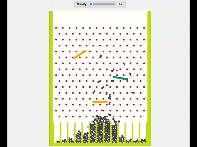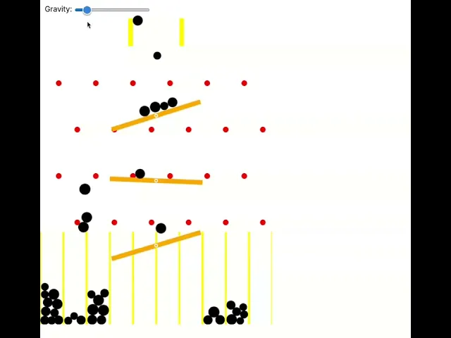It's not exactly how it is supposed to work. The balls all fall straight, and the bin meant to collect them is also improperly placed. It's not quite the expected response, but this is not bad. Besides that, everything else, including the gravitational pull change, works fine.